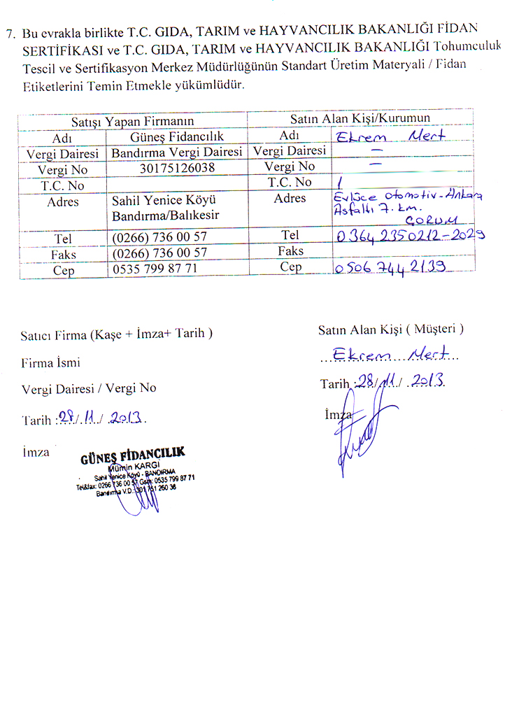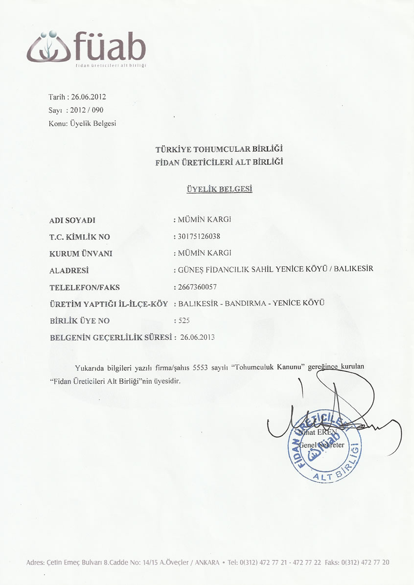 FÜAB - FİDAN ÜRETİCİLERİ ALT BİRLİĞİ ÜYELİK BELGESİ